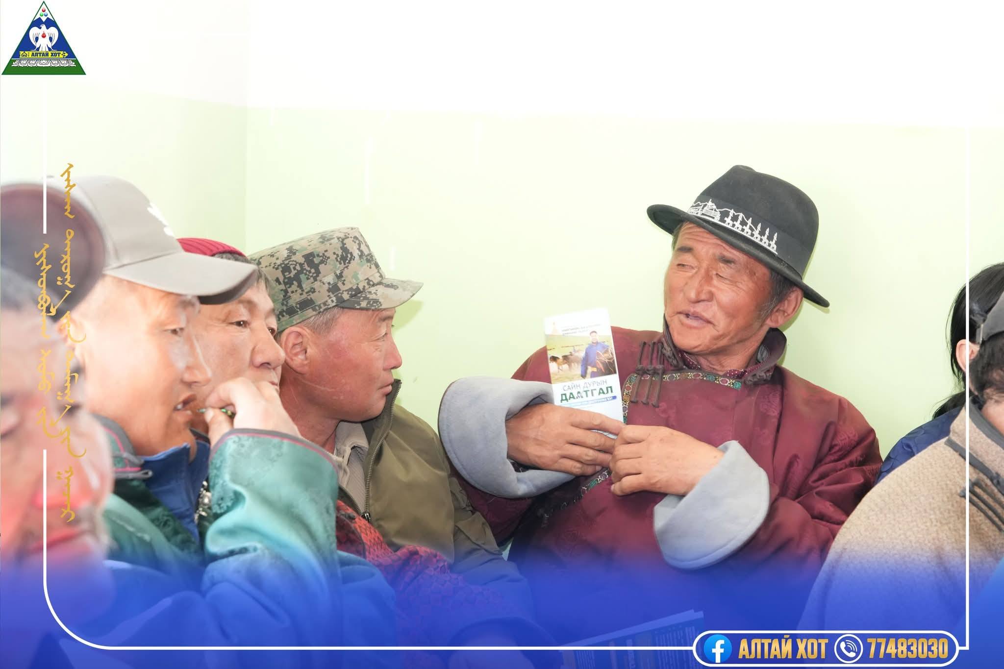 Мөн аймгийн Байгаль орчны газар, Хөдөлмөр халамжийн үйлчилгээний газрын төлөөлөл оролцож малчдад цаг үеийн мэдээ мэдээлэл, хууль тогтоомжийн хэрэгжилт, бодлого төлөвлөлтийн талаар сургалт, мэдээлэл хүргэлээ.