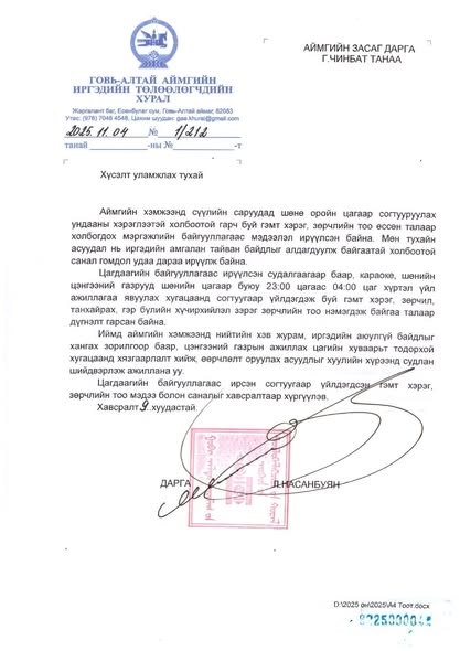 Иргэн, аж ахуйн нэгж бүр хариуцлагатай байж, хууль журмыг чанд мөрдөж хамтдаа аюулгүй, амгалан орчныг бүрдүүлцгээе!