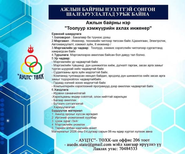 НЭЭЛТТЭЙ АЖЛЫН БАЙРНЫ ЗАР